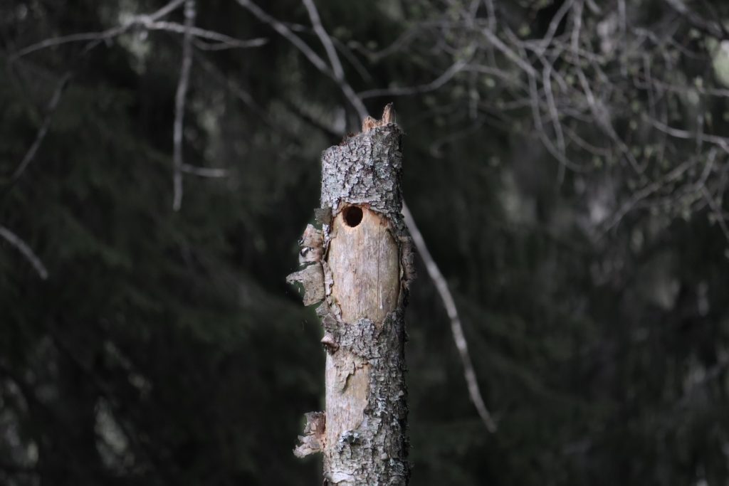 Eikä näy pesäkoloja kuolleissa puissa. Koska niitä pystyyn kuolleita puita ei ole. Eikä siis ole pesäpuita niille linnuille, joille se on elinehto.